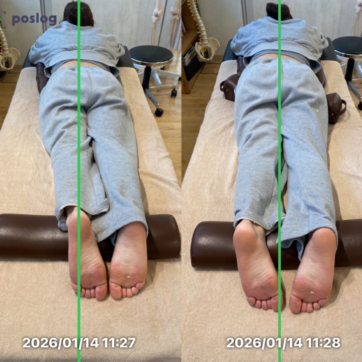 そのため、「左足が長い気がする」という感覚が生じ、歩行時の違和感や、背部・腰部の痛みにつながっていました。単に“歪んでいる”のではなく、「良い姿勢を取ろうとする意識」が、かえって歪みを強めてしまっている状態でした。
