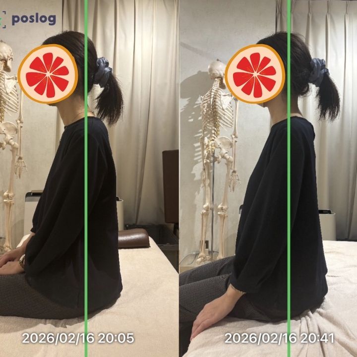 です。あわせて、デスクワーク時の座り方の見直しや、脚を組まない工夫、簡単なセルフケアも指導しました。