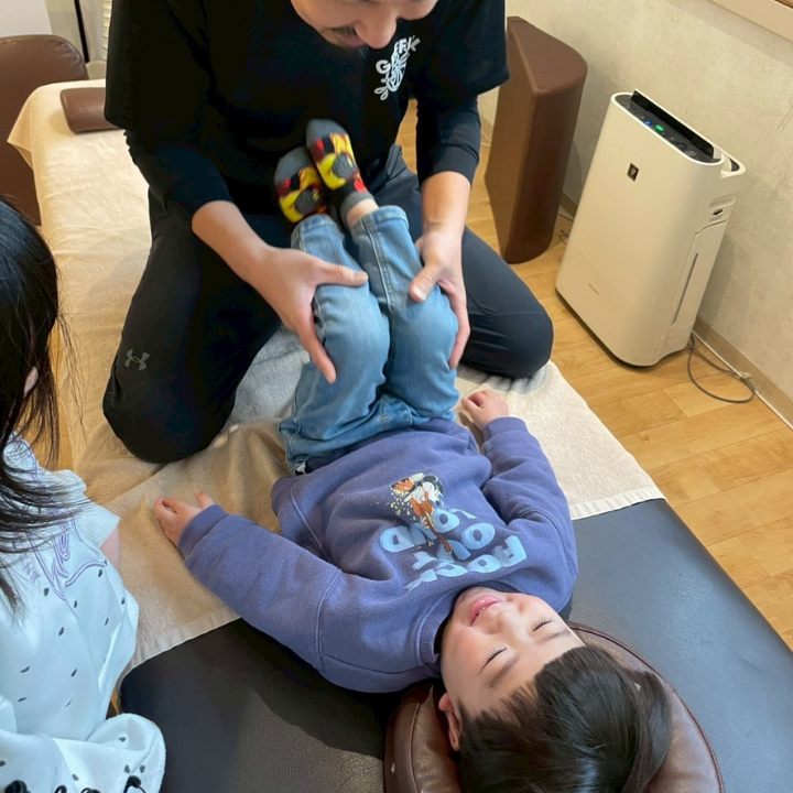 施術後は、仰向けでの足の長さがそろい、骨盤の位置が安定。足上げテストでも「動かしやすい!」と笑顔が見られ、保護者の方も「体が軽くなったように見える」と喜ばれていました。