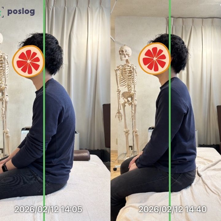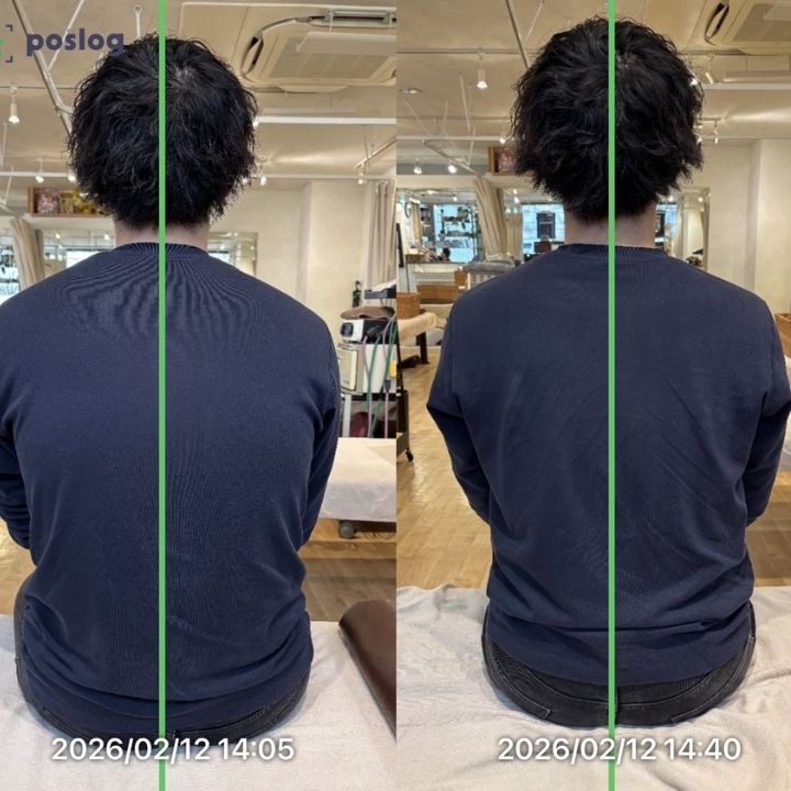施術後は、立位での肩の高さの差が軽減し、身体の軸が安定しました。「立った感じが違います」「左右のバランスが揃った感じがする」とご本人も体感の変化を実感されました。トレーニング時の左右差も改善傾向にあり、今後は正しいフォームでの強化を進めながら、姿勢の安定化を図っていく予定です。