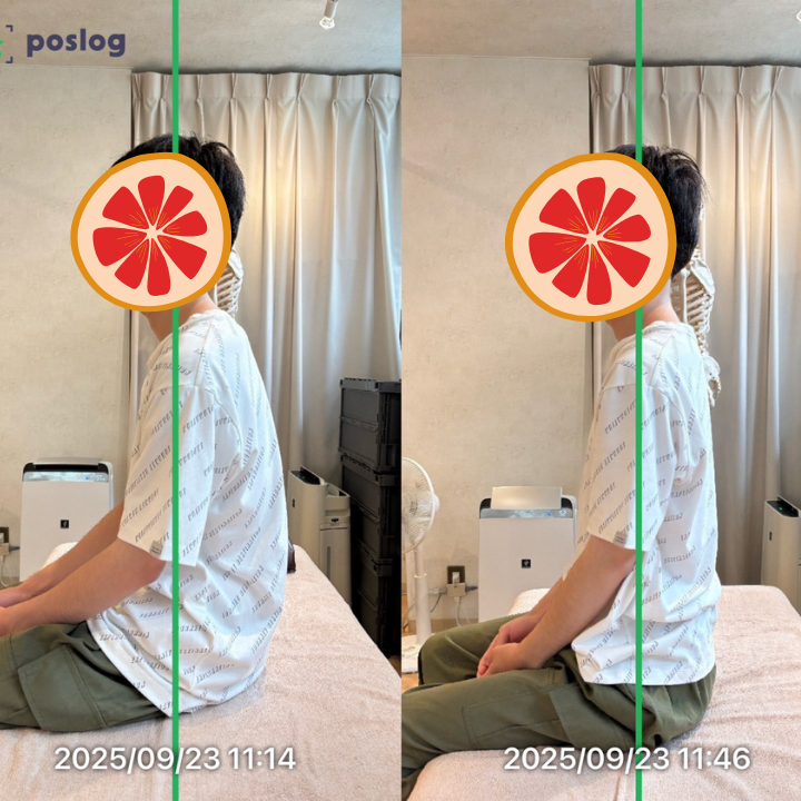 施術後は、下を向いた際の首の違和感が軽減され、「首が軽くなった」と実感していただけました。また、肩の位置が自然に後方へ引かれ、胸が開きやすくなり、呼吸が深くしやすい状態に改善しました。